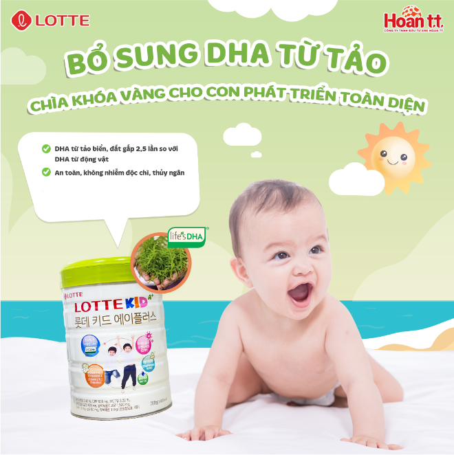 Lotte Wellfood là công ty sản xuất thực phẩm dinh dưỡng đầu tiên chiết xuất thành công DHA từ thực vật tại Hàn Quốc, được đưa vào Lotte Kid A+ giúp dễ hấp thu và đảm bảo an toàn tuyệt đối cho trẻ. DHA trong Lotte Kid A+ được tính toán với tỷ lệ cân đối, được WHO và FAO khuyến khích.